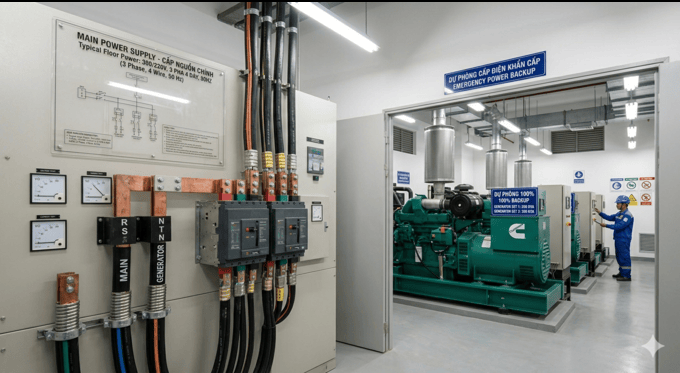• 3 sets of 350 KVA diesel generators to provide 100% backup for entire building.